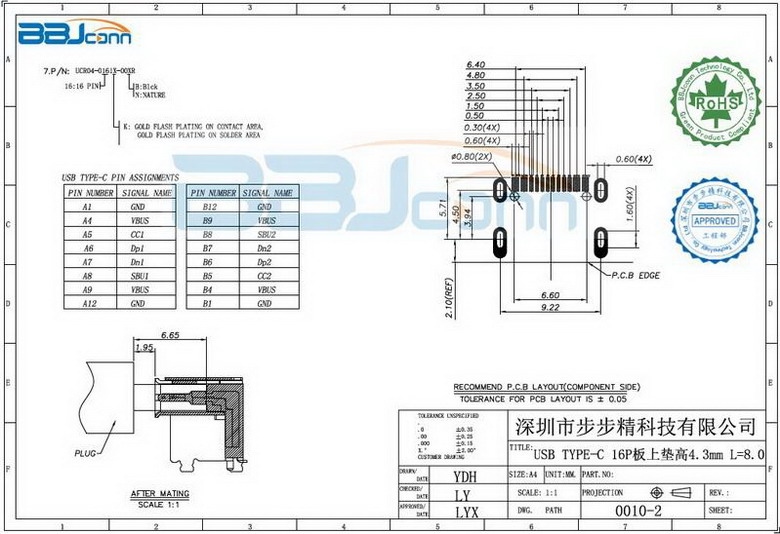 TYPE-C大電流連接器相關(guān)參數(shù):